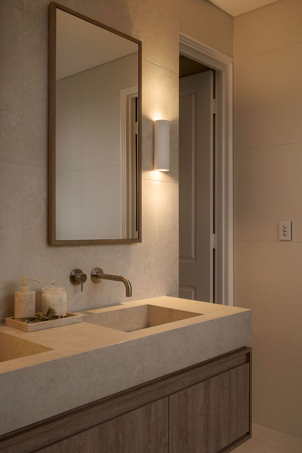 Elsie is a thoughtfully resolved ensuite renovation that transforms a compact footprint into a calm, spa-like retreat. Designed to balance refined aesthetics with everyday practicality, the space responds directly to the client’s brief for increased storage, integrated functionality and tailored moments of comfort.